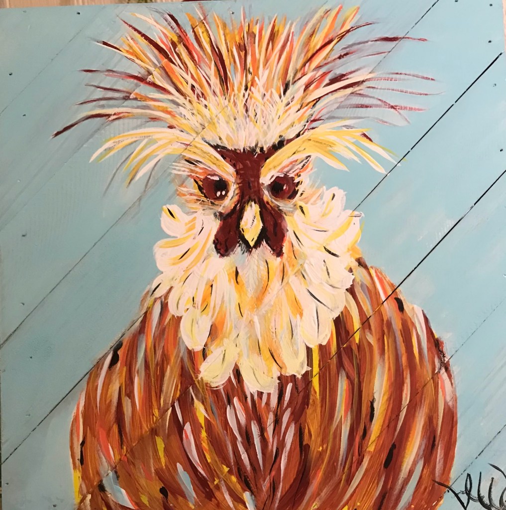 Fussy Freida is a fluffy white hen content in flowers. Purchase Fussy Freida or Sweet Pea