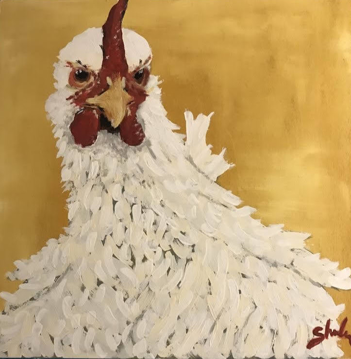 Fussy Freida is a fluffy white hen content in flowers. Purchase Fussy Freida or Sweet Pea