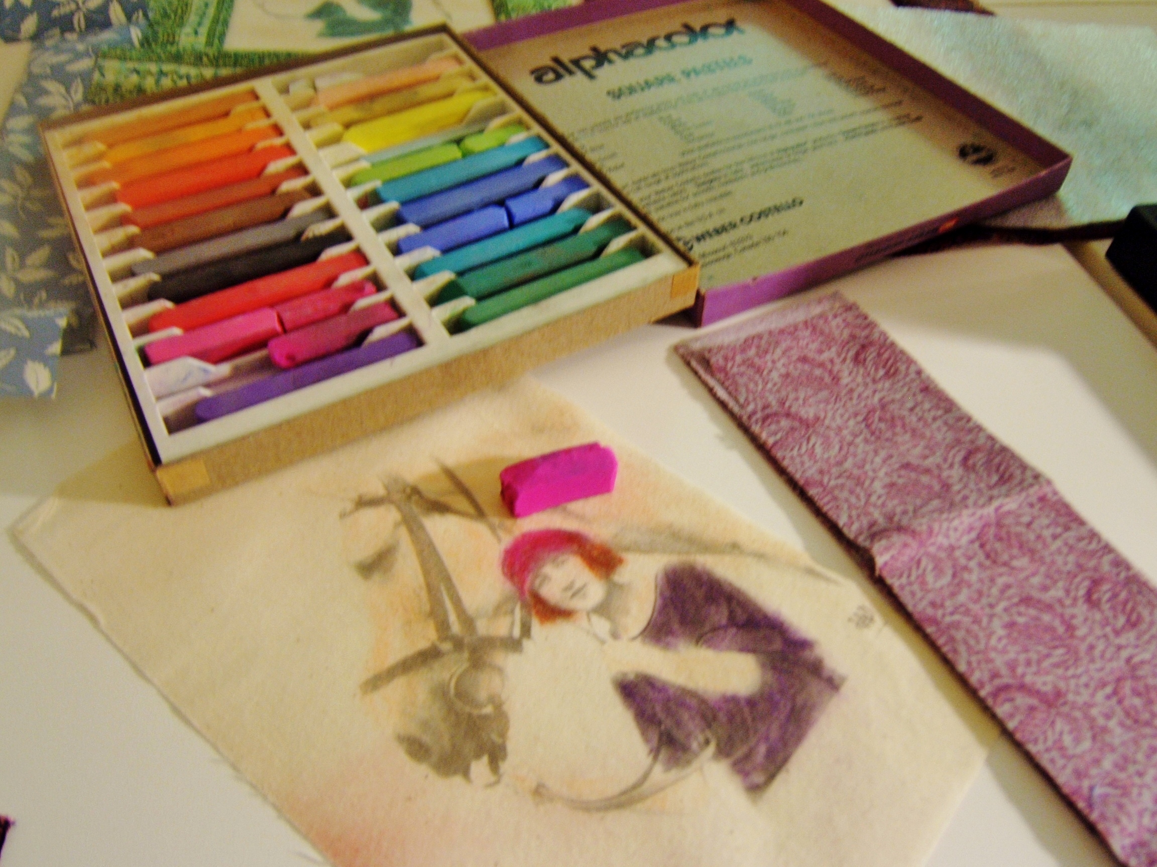 2. Cut the fabric to size, approx. 8×11”–a little over so you can trim it back with a rotary cutter after you adhere it to the card stock.