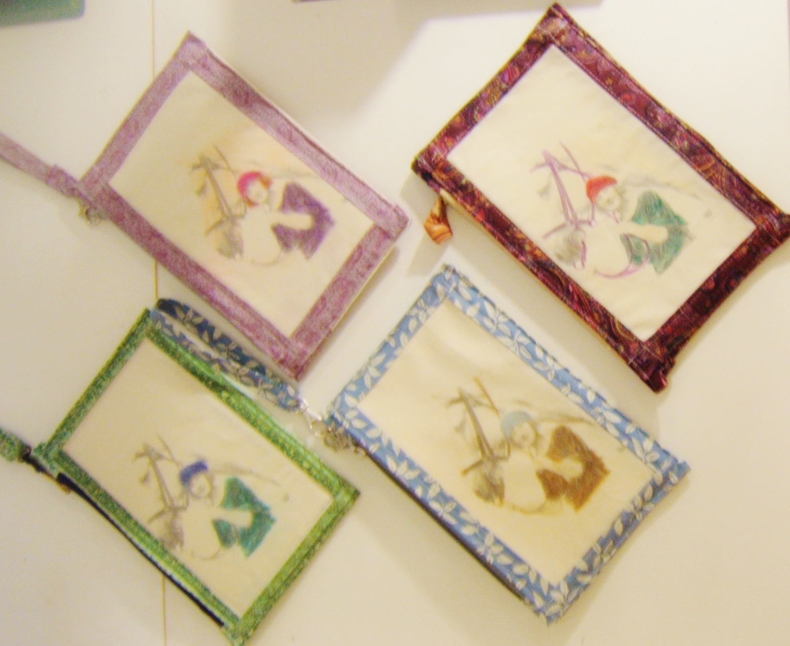 As Team Leader, I have come up with a Recapture craft project involving transferring a photo image to fabric via the inkjet printer. I’ve been working on the project examples in the studio and wanted to share the results with all of you. I am very proud of my results in these zippered wristlet pouches.  You can find one in my Etsy shop, too.  (https://www.etsy.com/listing/190151068/vintage-photo-transfer-to-fabric?ref=listing-shop-header-0)