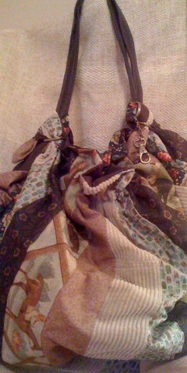 I run an Etsy shop called Green Craft Studio. I work from home, sewing products that I design and sell on Etsy. When I was just a teeny bopper growing up in the 70’s, my mom sewed from home. She designed and fabricated costumes for a rock band. How cool is that, right? I thought it was real cool, but I had no idea how much work went into those costumes–most of Mom’s sewing happened after all the family went to sleep. I’d like to think that my products are real cool, just as cool as what mom did in the 70’s, but I’ll let my readers be the judge of that. I guess that’s why you see the 70’s influence on my favorite item, the Hip2Bsquare BoHo Bag. It is the most popular item I make. It is a beautiful purse that holds everything but the kitchen sink.  I get custom requests for it all the time. It happens to be my favorite thing to make, too.
